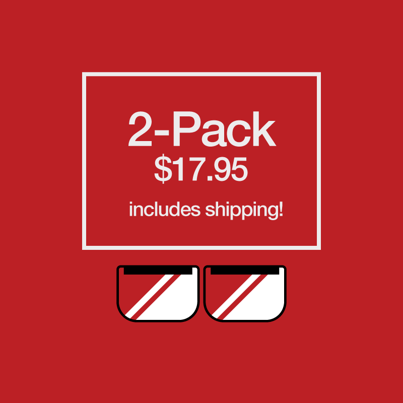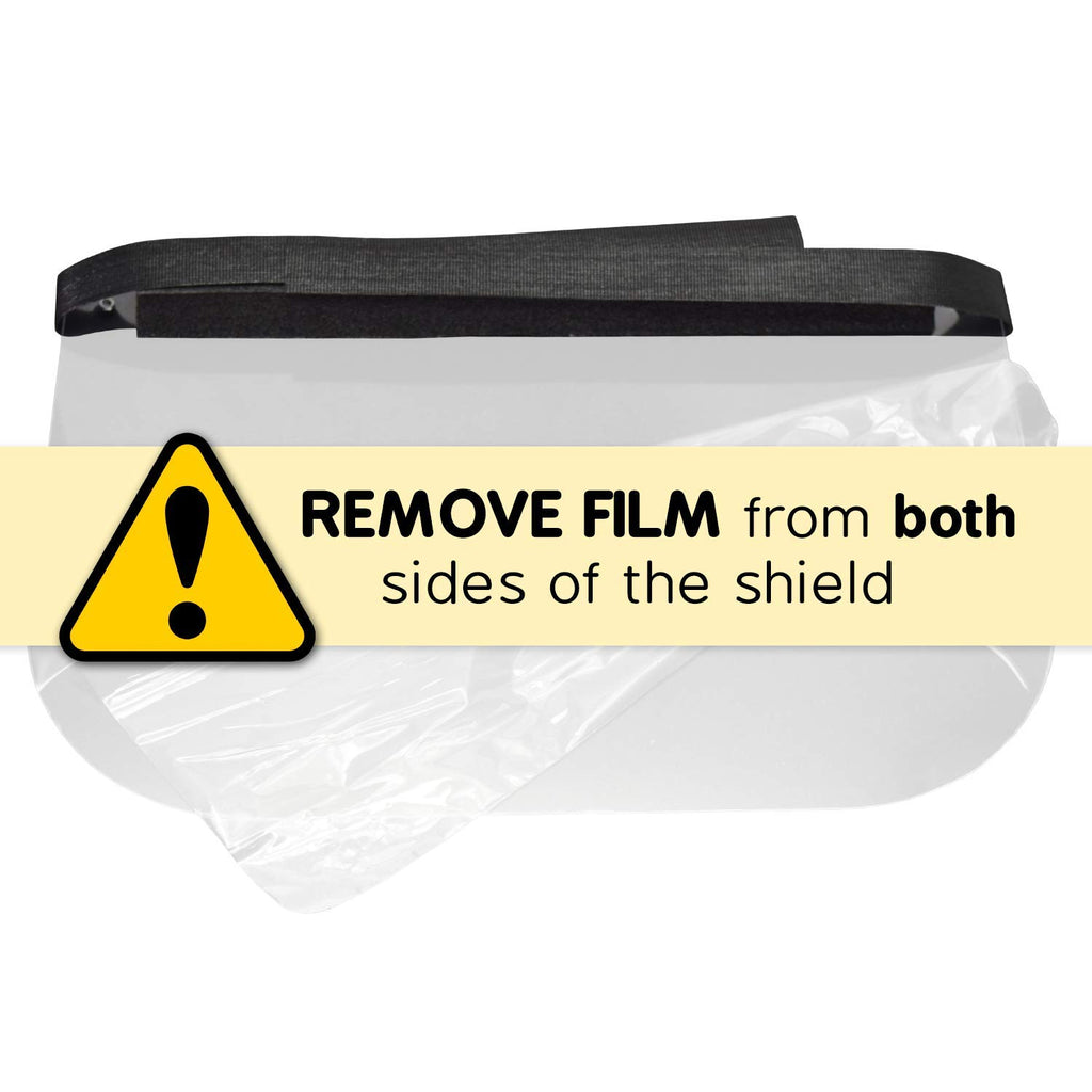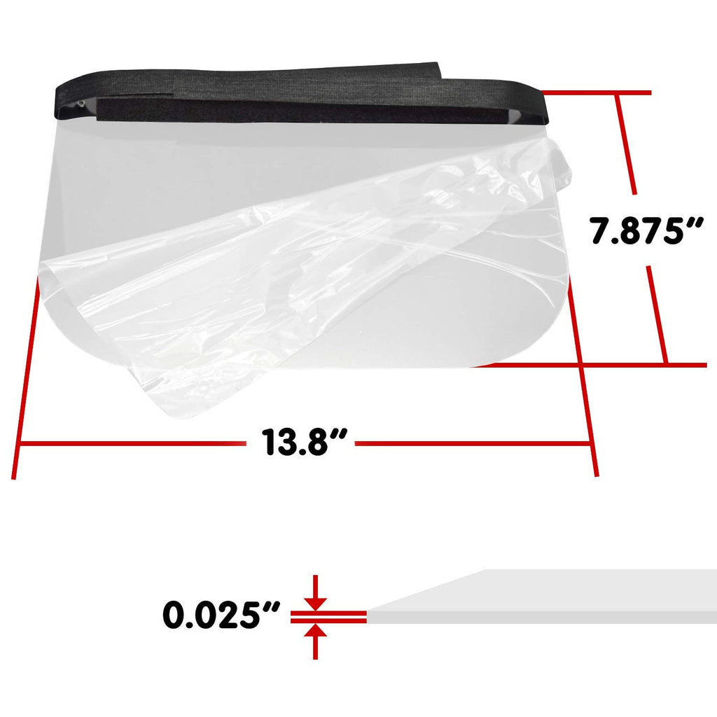 2-Pack of our Made-in-USA 100% medical-grade Polycarbonate face shields, each one individually packaged in a reusable storage bag with name/ID label.