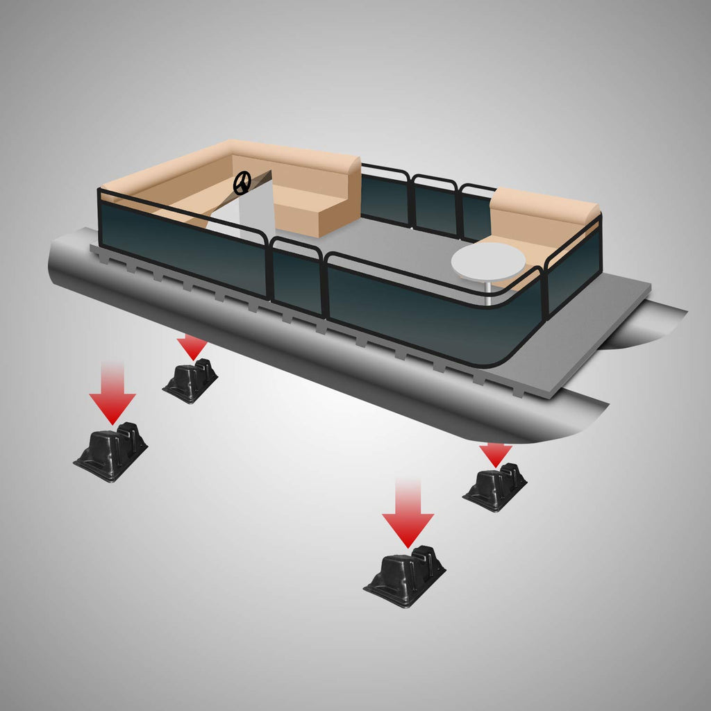 - 4 Pontoon Stands Included in Every Purchase, New Design pontoon storage blocks. Sit on top of cinder block